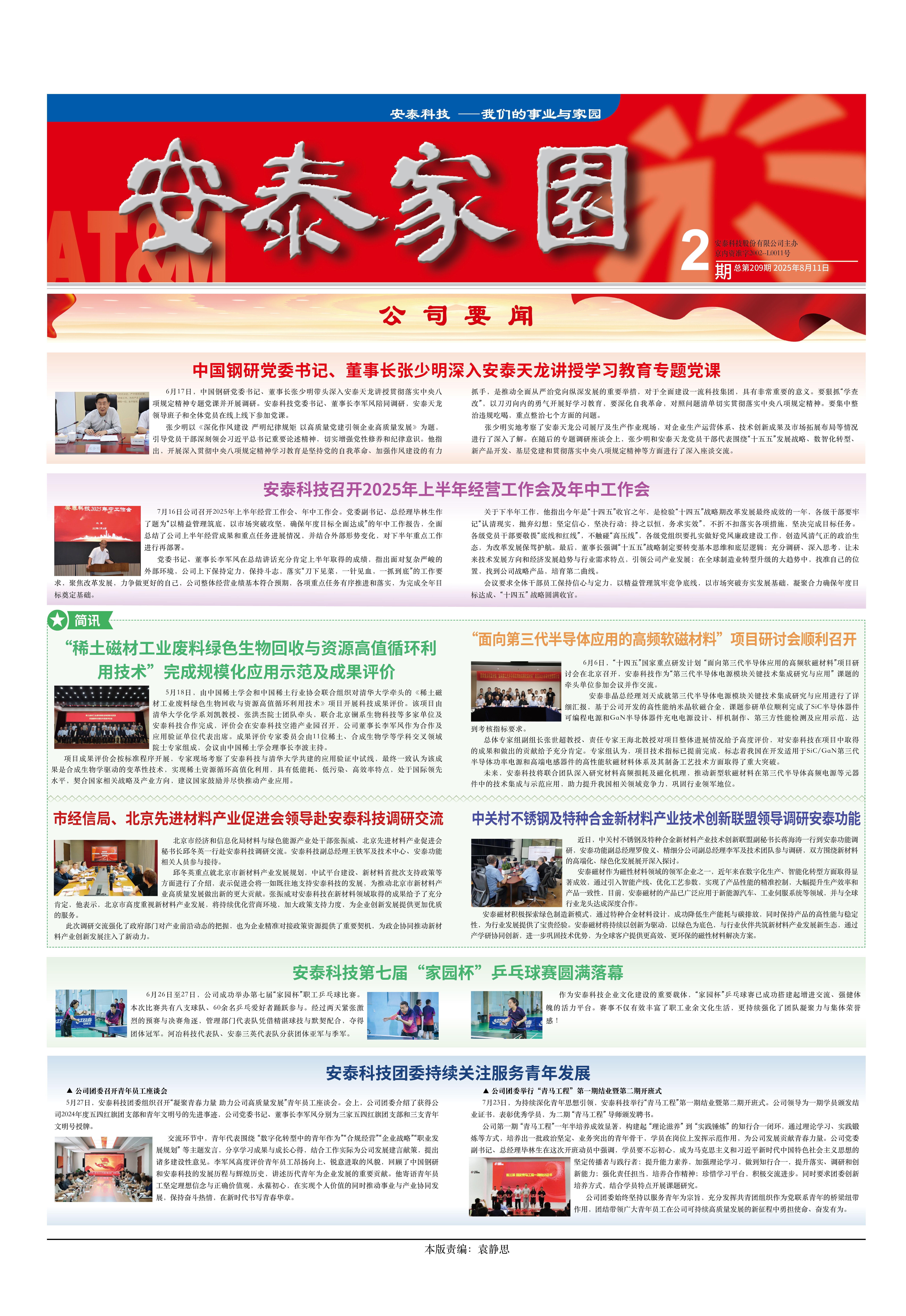 6月17日,中國鋼研黨委書記、董事長(zhǎng)張少明帶頭深入安泰天龍講授貫徹落實(shí)中央八項(xiàng)規(guī)定精神專題黨課并開展調(diào)研。安泰科技黨委書記、董事長(zhǎng)李軍風(fēng)陪同調(diào)研,安泰天龍領(lǐng)導(dǎo)班子和全體黨員在線上線下參加黨課。
